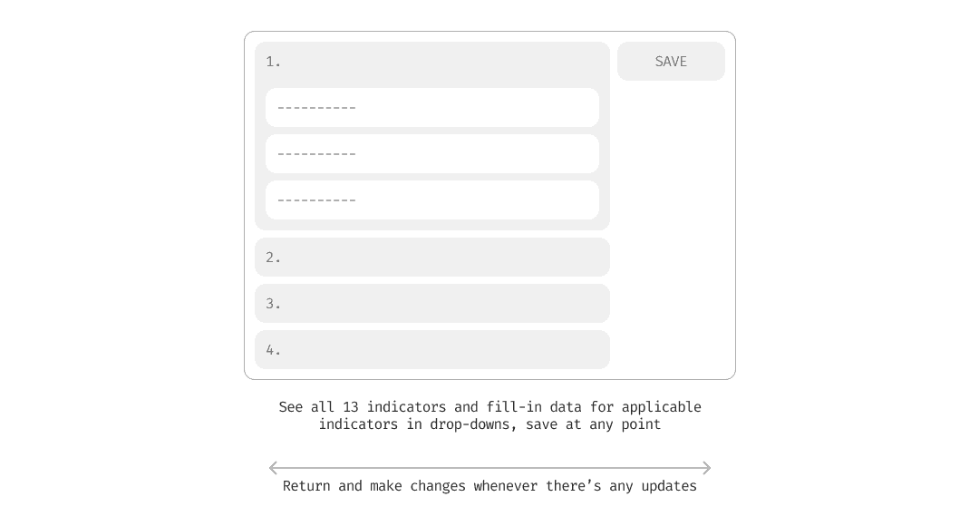 No need to click through multiple pages. All indicators can be viewed and updated on one page.