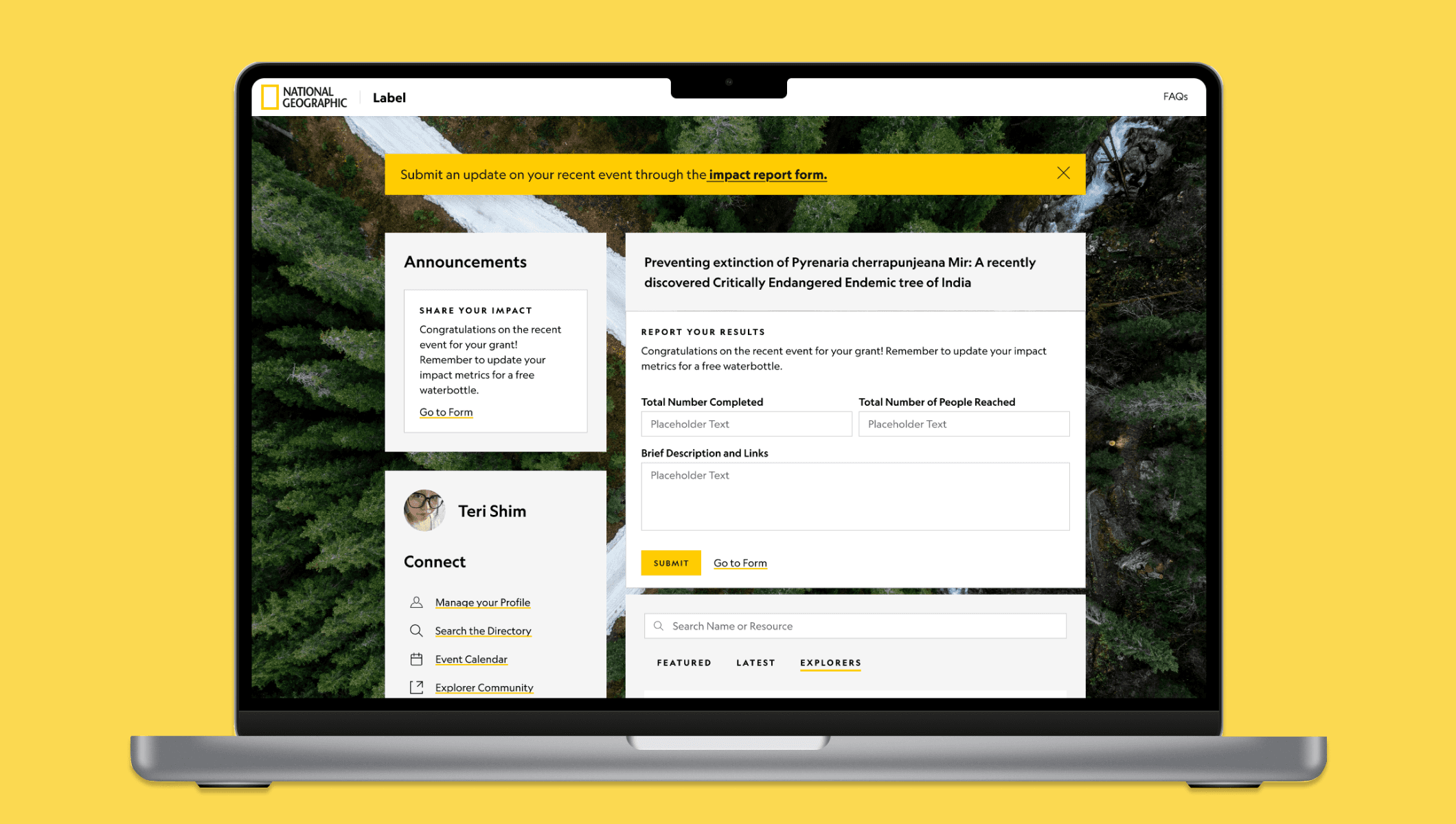 The goal? Reimagine how Explorers report their project impact through the platform they already use, the Explorer Home